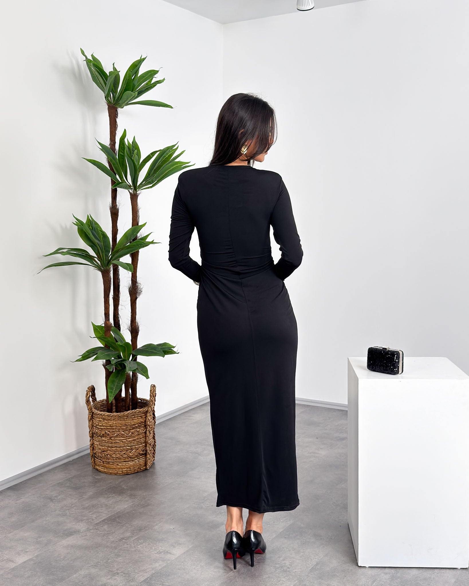 Şıklığı minimal ayrıntılarla yakalayın.Kruvaze yaka kesimi, ön buzgü formülü ve zarif broş detayıyla öne çıkan bu elbise, güçlü ve feminen...